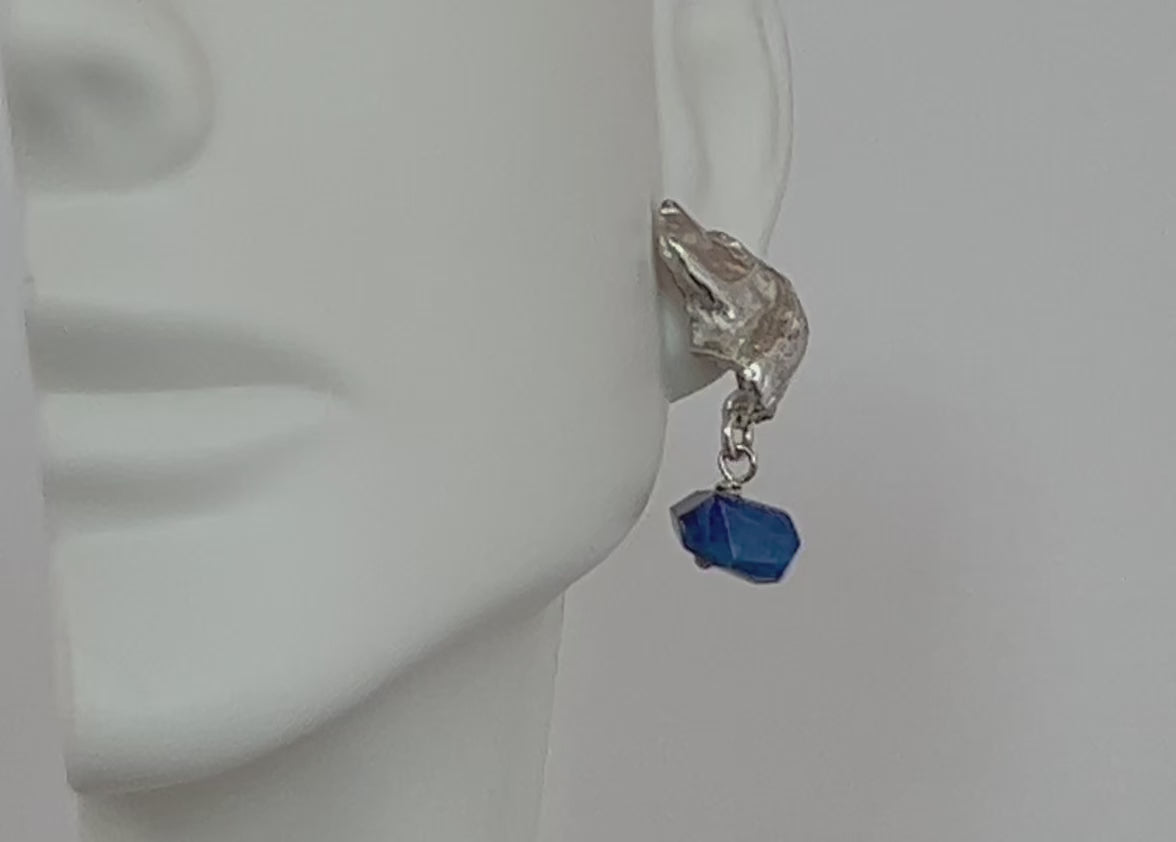 The bespoke sterling silver Spaniel stud earrings with Lapis Lazuli drops in are in stock and are shipped from Charleston, SC.