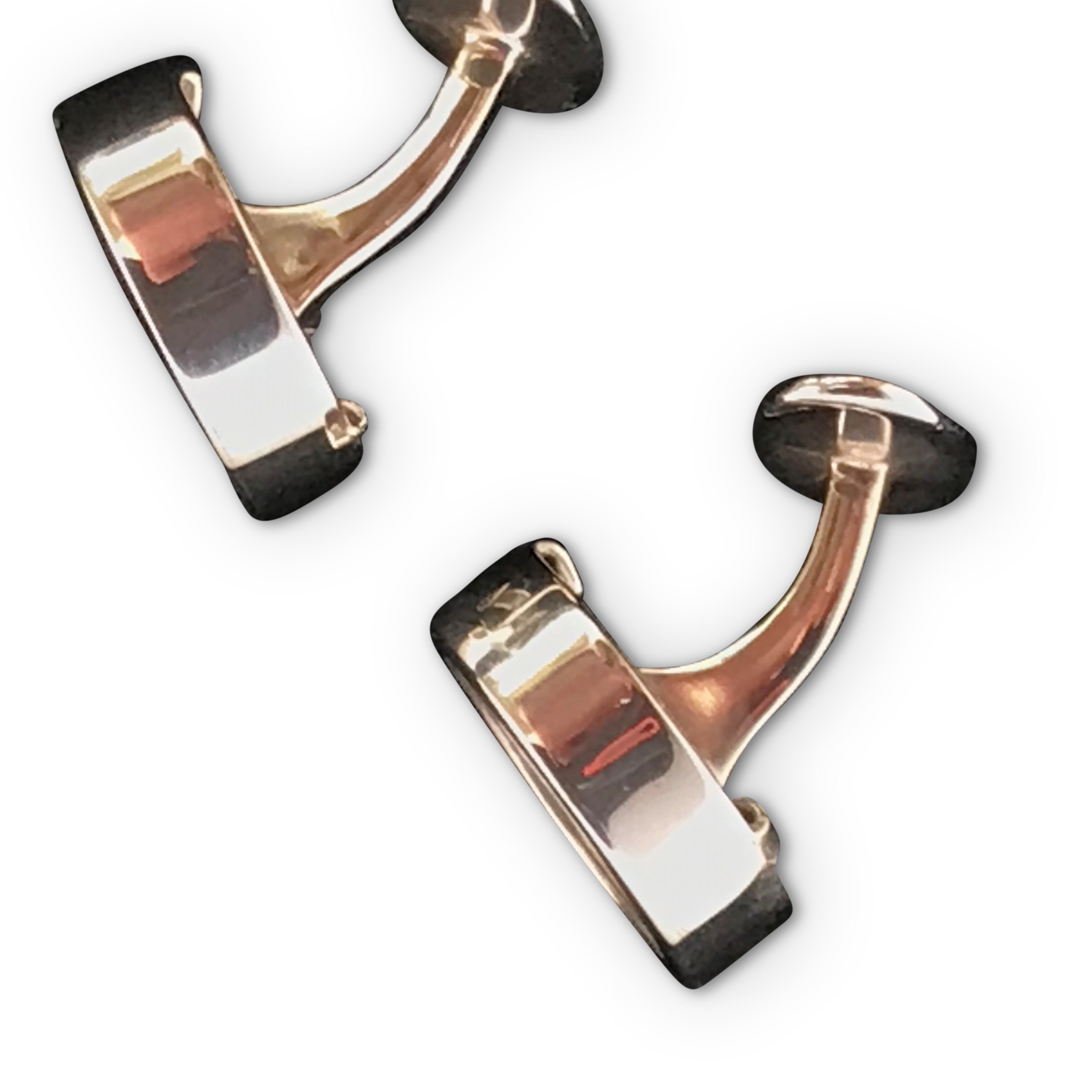 Discover the collaboration between esteemed miniature oil painting artist, BETH de LOISELLE, and jewelry maker, PAUL EATON, with these original Fox Hunt themed exquisitely detailed miniature oil paintings encased in bespoke sterling silver solid backed cufflinks.  These miniature oil paintings portray stunningly detailed Foxes.  In the photographs are other fox hunting themed oils by Beth de Loiselle which make the cufflinks more fun, one can choose any combination for a pair.  The cufflinks measure 3/4"diameter x 13/16"h.  IN STOCK