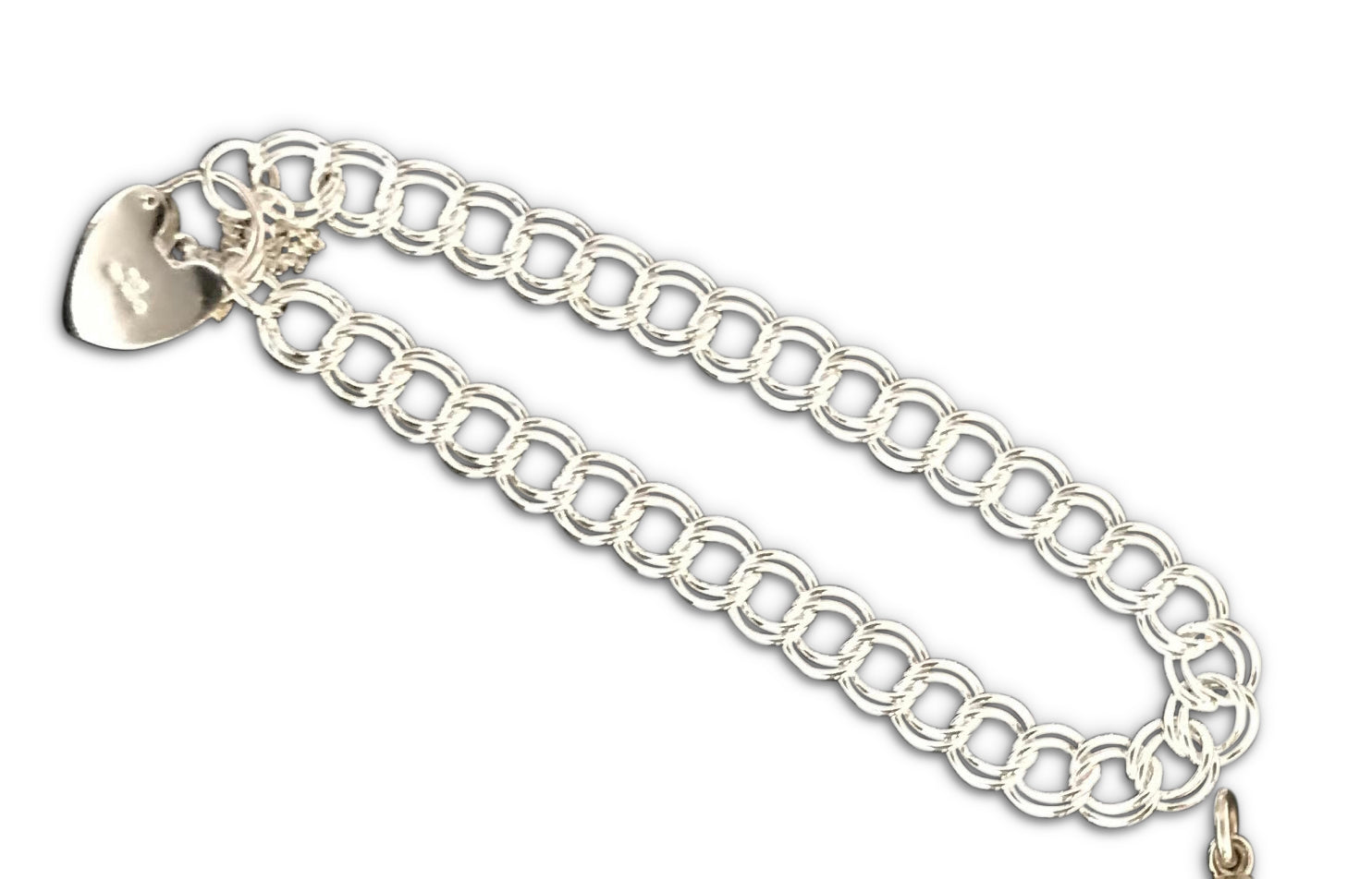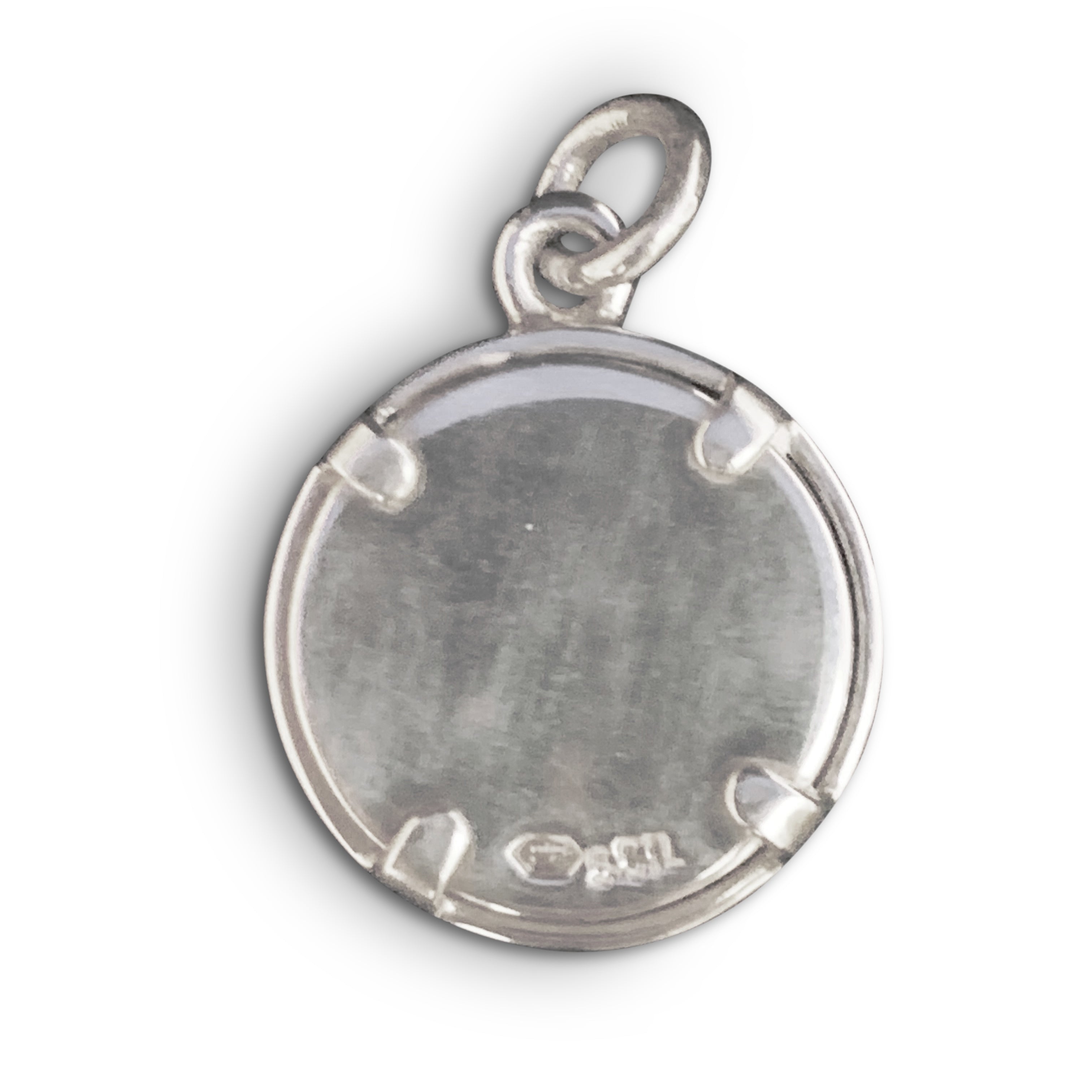 Discover the exquisite collaboration between esteemed miniature artist, BETH de LOISELLE, and Master jewelry maker, PAUL EATON, with this original Spaniel oil miniature painting encased in a bespoke sterling silver charm or pendant measuring ¾" diameter, 1/4 "h. The miniature oil painting portrays a beloved, sweet Spaniel; Springer Spaniel or English Cocker Spaniel. The pictured sterling silver Double Curb bracelet can be purchased for $315. IN STOCK